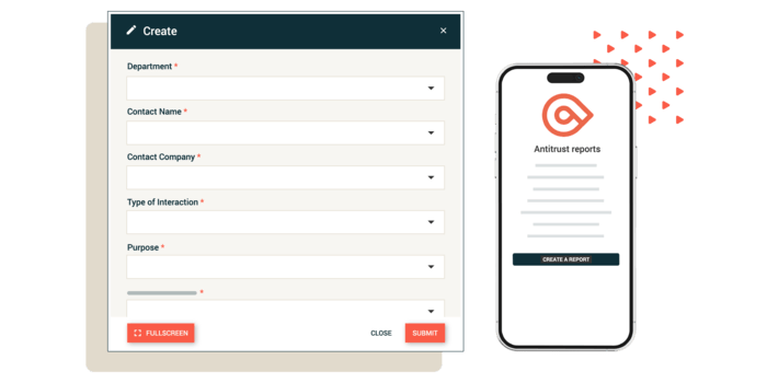 Connect your antitrust application to adjacent compliance processes, ensuring you are executing on information in context. Give employees capability to submit reports through anonymous compliance channels.